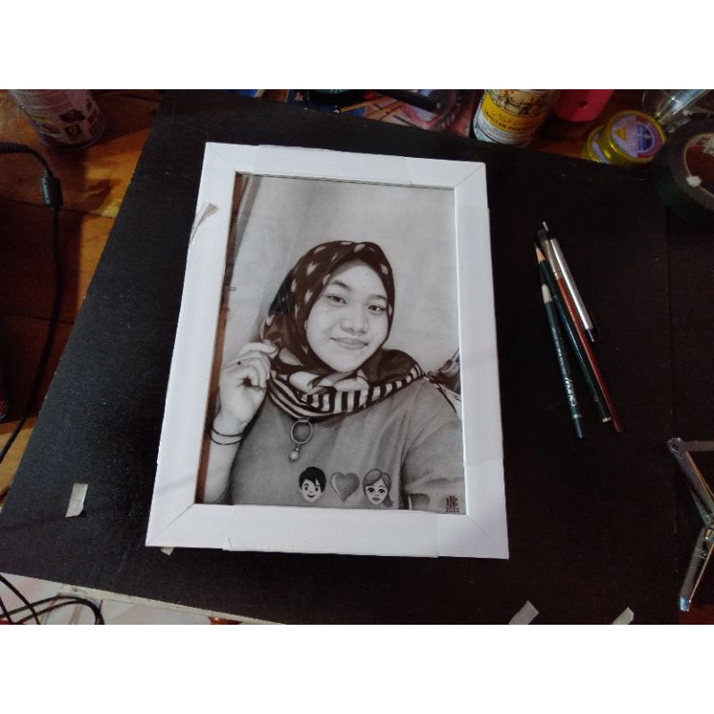 Jual Lukisan Sketsa Wajah Hitam Putih 25x30cm 2 Wajah Kab Sukabumi Dede Design Tokopedia